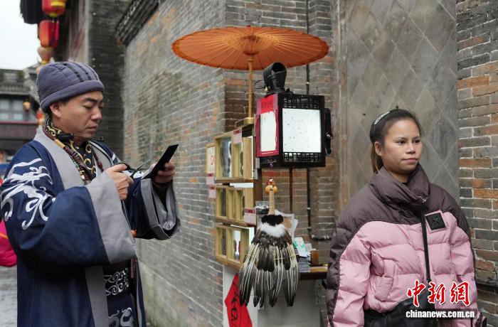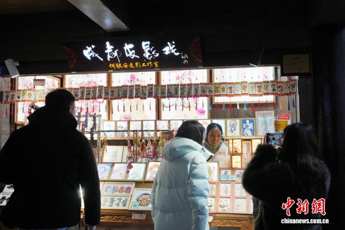 图为中邦旅客正在锦里特点街区采办特性产物。中新社记者 安源 摄