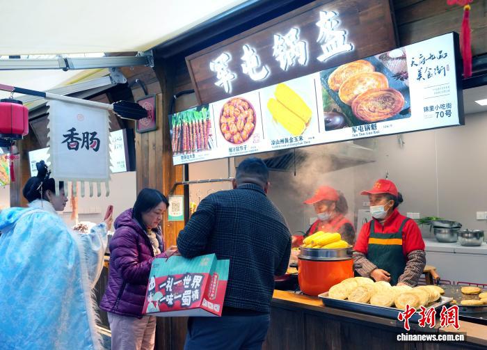 图为乘客正在锦里特性街区品味4川古板好食。中新社记者 安源 摄