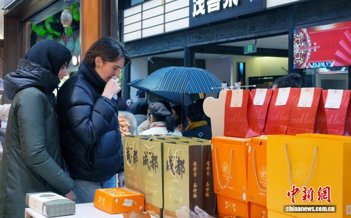 图为乘客正在锦里特性街区品味4川古板好食。中新社记者 安源 摄