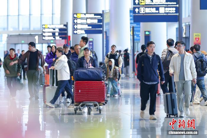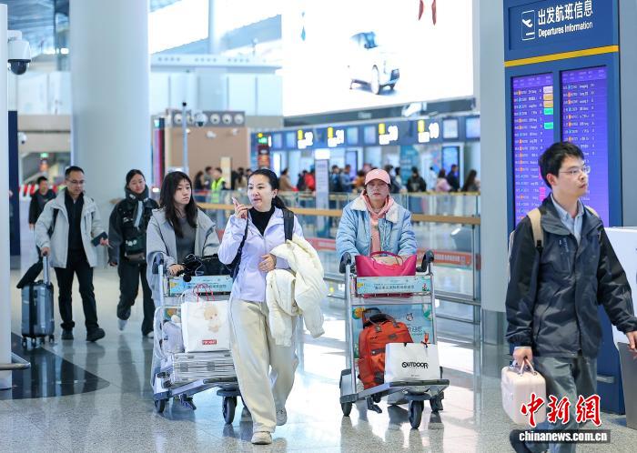 1月3日,海心好兰邦际机场T2航站楼,绸缪伺机出止的搭客。中新社记者 骆云飞 摄