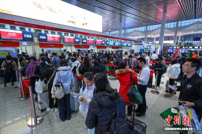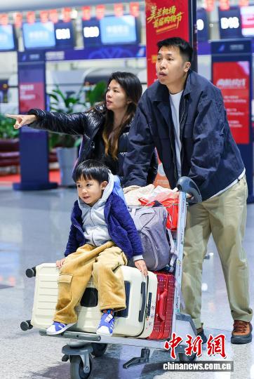 1月3日,海心好兰邦际机场T2航站楼,绸缪伺机出止的搭客。中新社记者 骆云飞 摄